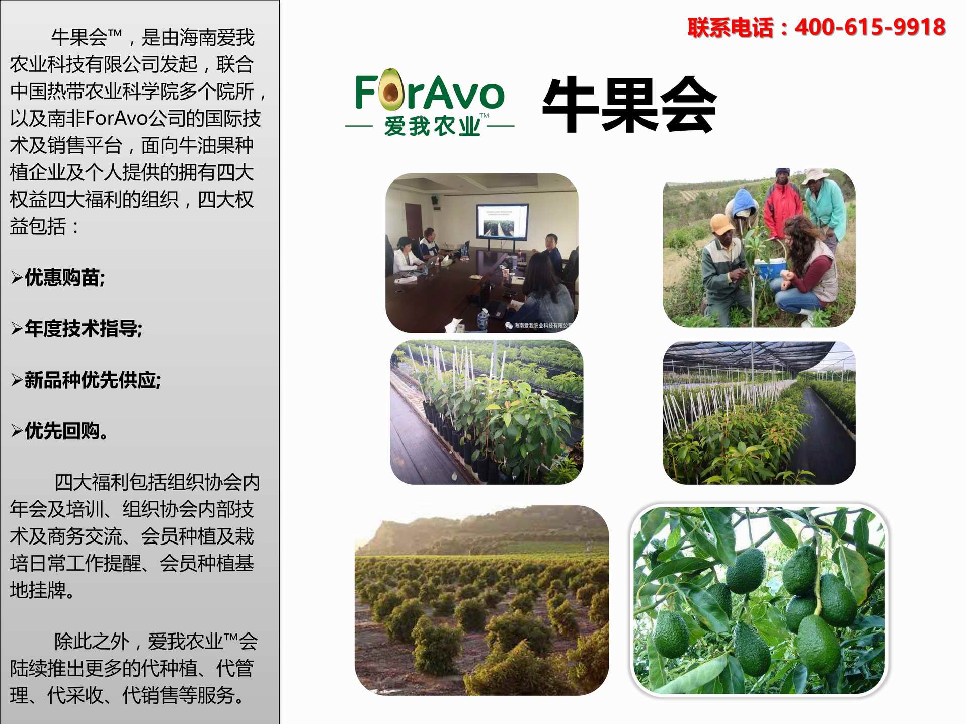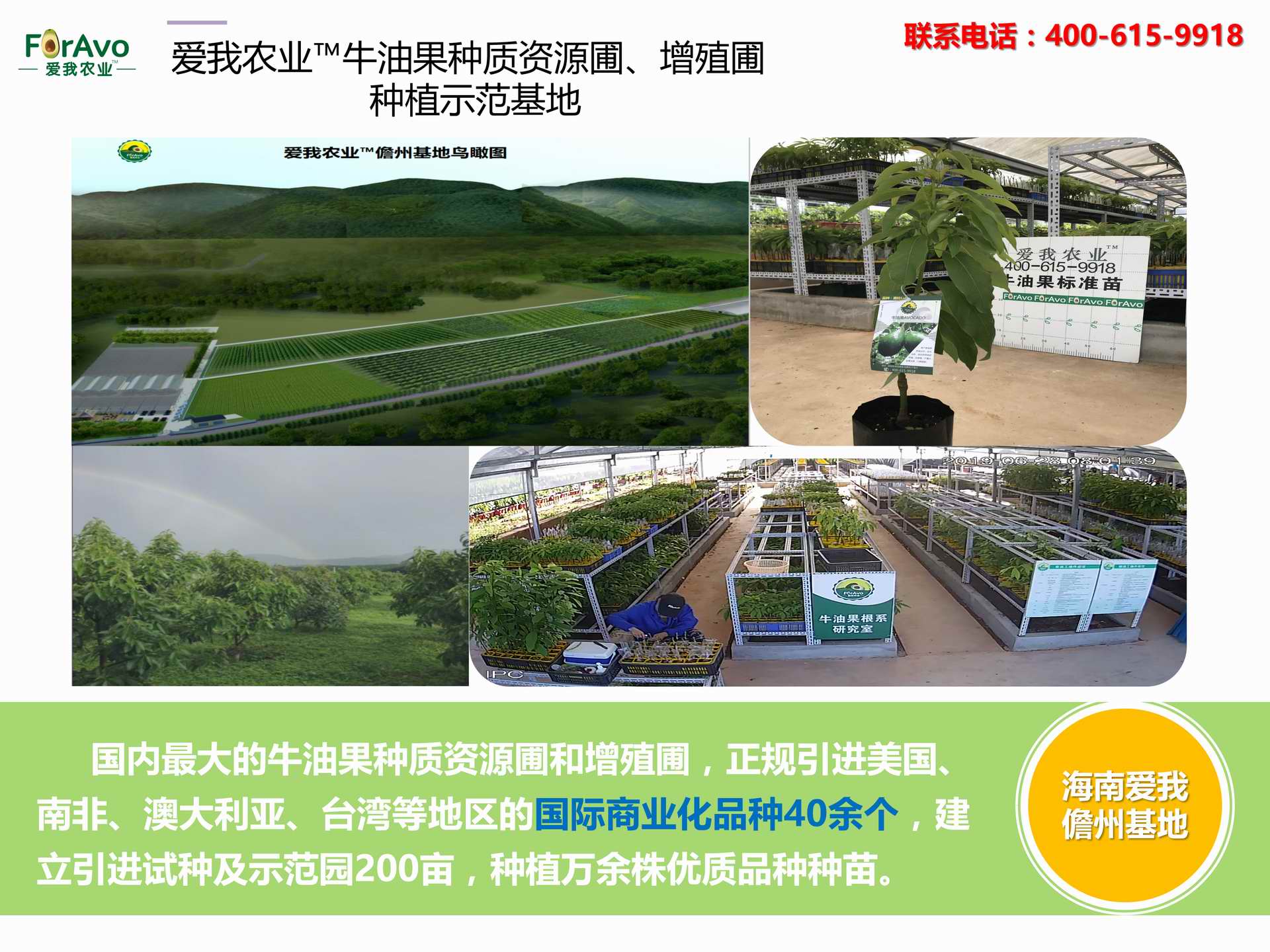 海南愛我農(nóng)業(yè)科技有限公司是一家綜合性的高科技農(nóng)業(yè)發(fā)展企業(yè),旗下愛我農(nóng)業(yè)TM致力于打造中國最大最強的牛油果種植企業(yè)。依托美國、南非、澳大利亞等擁有百年牛油果繁育、種植歷史以及產(chǎn)業(yè)鏈市場的優(yōu)勢,開展牛油果種苗繁育、種植技術(shù),種植加盟、深加工等產(chǎn)業(yè)。結(jié)合中國市場,面向廣大苗圃基地、種植農(nóng)場、合作加工等企業(yè),推出的適合規(guī)?;藴驶呐S凸a(chǎn)業(yè)鏈服務(wù)。 Hainan Foravo Agricultural Technology Co., Ltd. is a comprehensive high-tech agricultural development enterprise , dedicated to building the largest and most powerful avocado plantation enterprise in China. Relying on the advantage of avocado nursery, planting history, and the industrial chain over 100 years in the United States, South Africa, Australia, we are carrying out nursery, planting, proce...